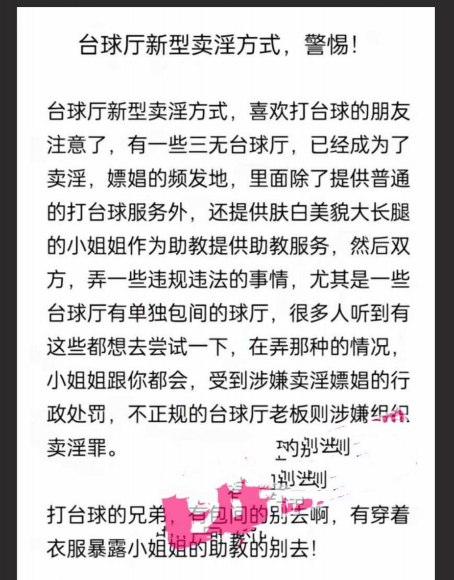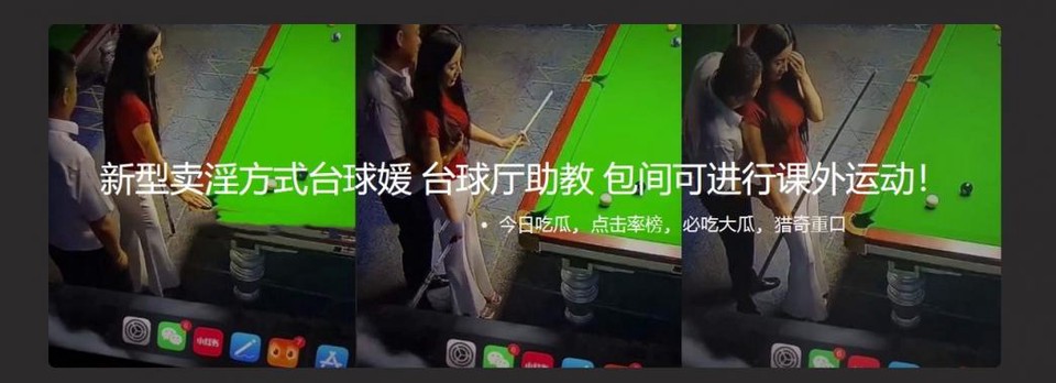 【影片名称】:新型卖淫方式台球媛 台球厅助教 包间可进行课外运动!【影片格式】:MP4【影片大小】:24.8MB【影片时间】:01:45【影片说明】:无码【解压密码】:1024【影片截图】:最近又有新型卖淫方式-台球媛,台球厅里的台球助教有单独包间可以进行课外运动。